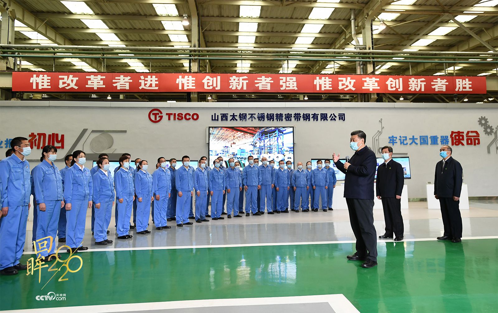 2020年5月,太钢不锈钢精密带钢有限公司的车间里,齿轮飞转,机器轰鸣。习近平总书记在山西考察时深入企业,实地察看转型发展案例。