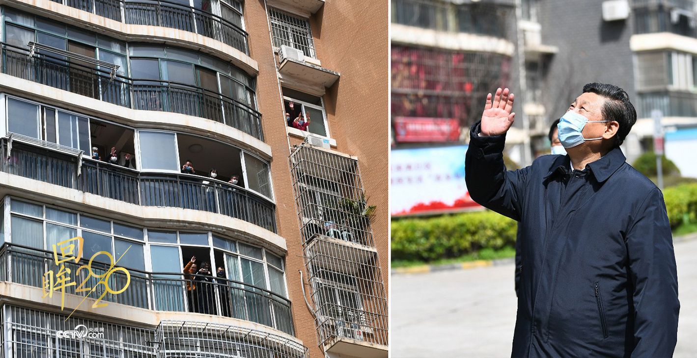 楼上,居家隔离的群众望向窗外,有的摇着国旗高呼:“中国加油!武汉加油!”楼下,习近平总书记不时驻足,微笑着向大家挥手致意:“大家一起加油,再坚持一下!”目光中饱含关切。