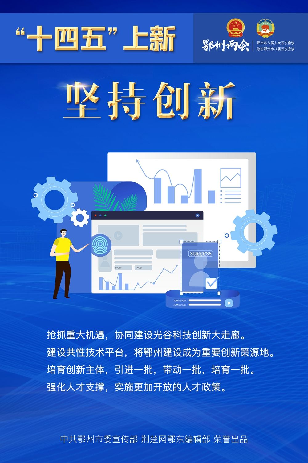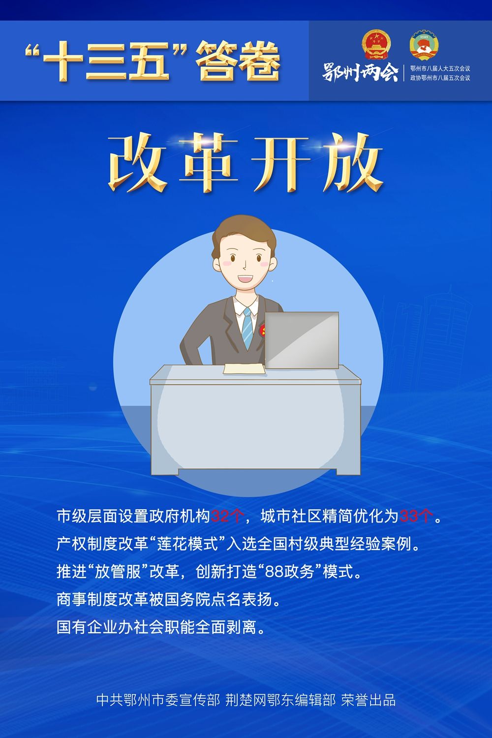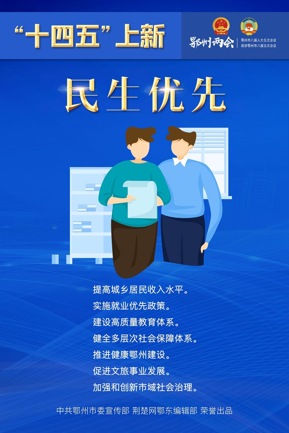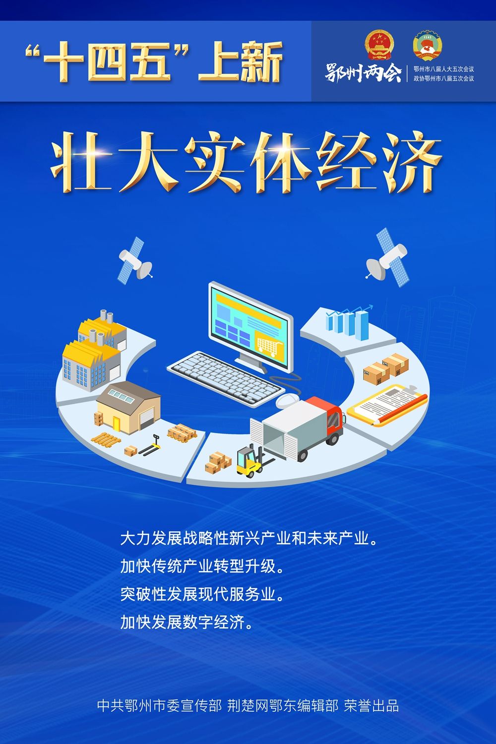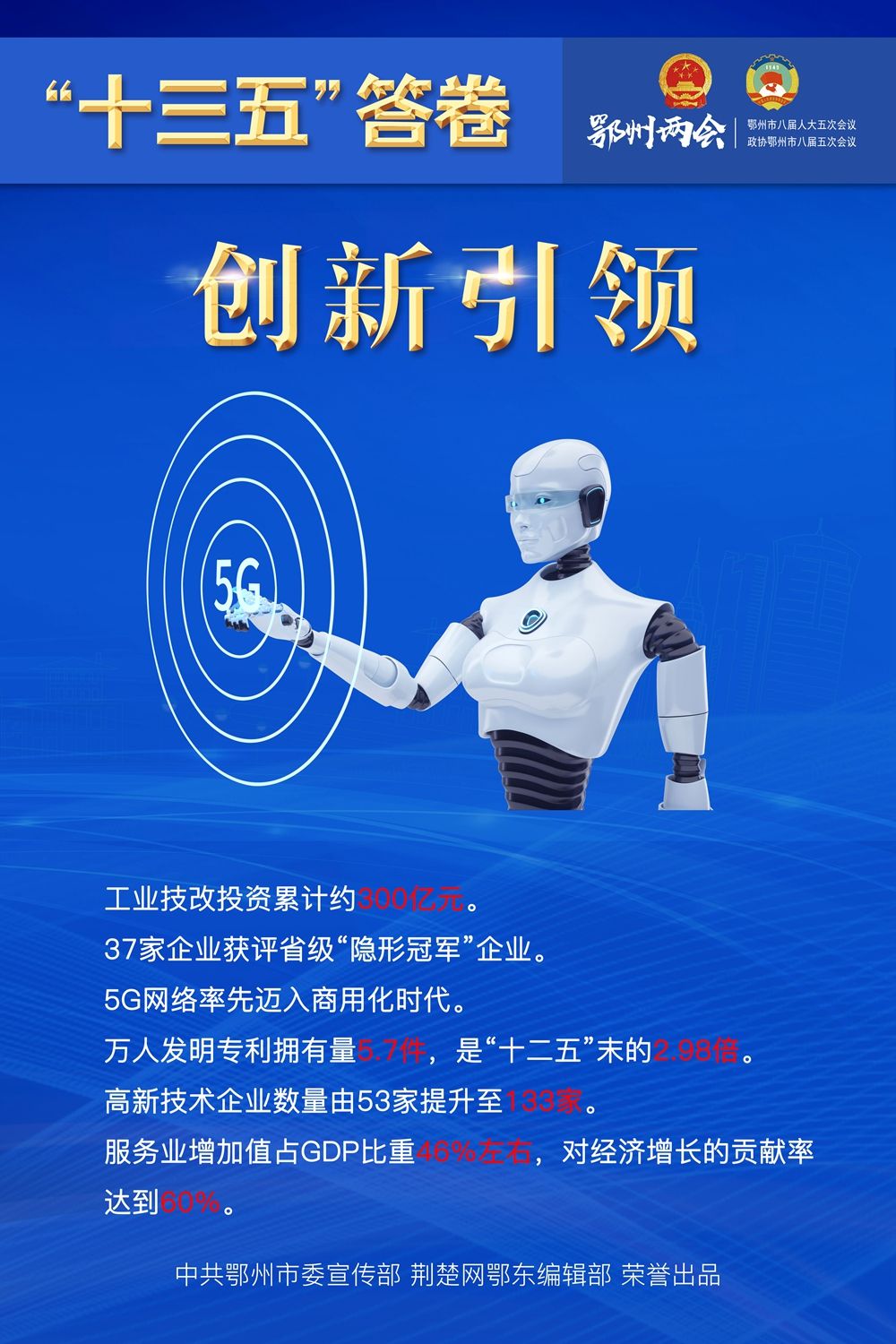 荆楚网客户端—荆楚网消息(记者王焱尧、吕鉴蕾、刘璐 通讯员曾辉)1月15日,鄂州市第八届人民代表大会第五次会议闭幕,为期4天的鄂州两会落下帷幕。回望和盘点,“十三五”表现如何?展望和启程,“十四五”怎样谋划?14张海报,带您速览鄂州奋进“十年 ”。