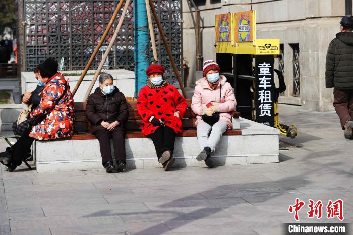 武汉街头佩戴口罩晒太阳的老人 张畅 摄
