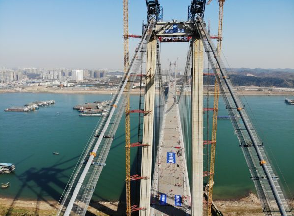 宜昌市伍家岗长江大桥主桥顺利合龙。通讯员秦万清 雷伟利 提供