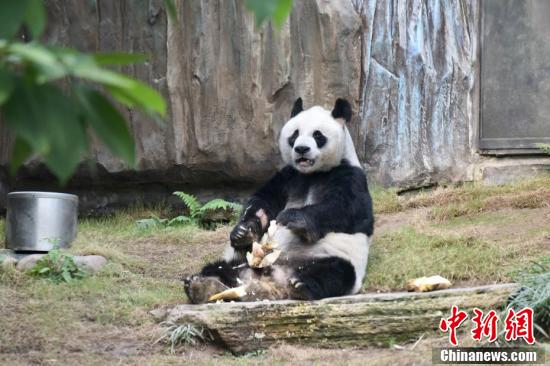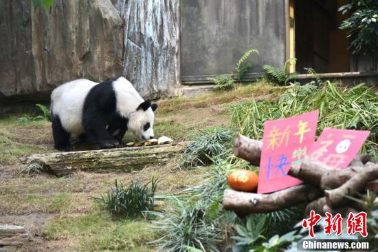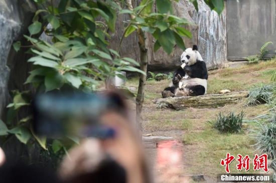 2月18日,香港疫情放缓,海洋公园当日重开,不少市民入园游玩,香港赛马会四川奇珍馆内大熊猫安安为香港市民带来新年祝福,迎接重开。图为大熊猫安安。