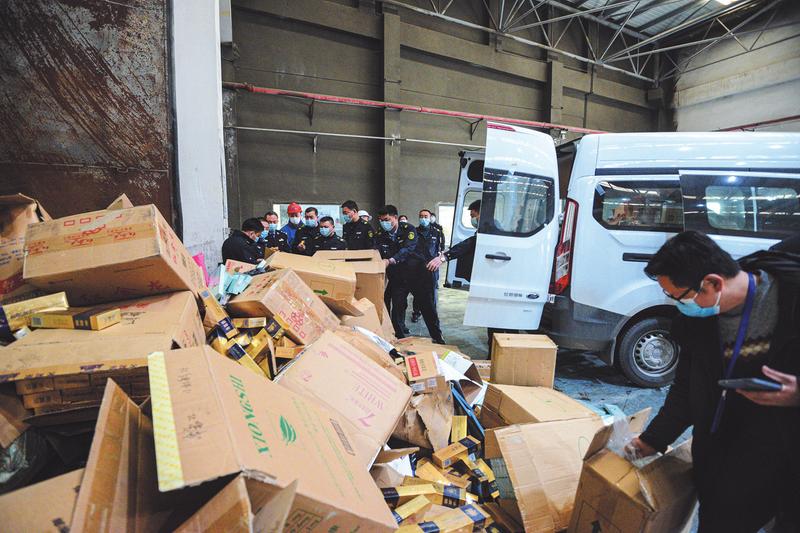 3月11日,市烟草专卖局组织开展公开销毁假冒走私香烟活动。当天在广水市康恒新能源有限公司销毁假冒、走私卷烟129个品规6092条,标值153万余元。公安、市场监管、公证处等相关部门全程参与监督销毁过程。 (随州日报全媒记者李文军摄)