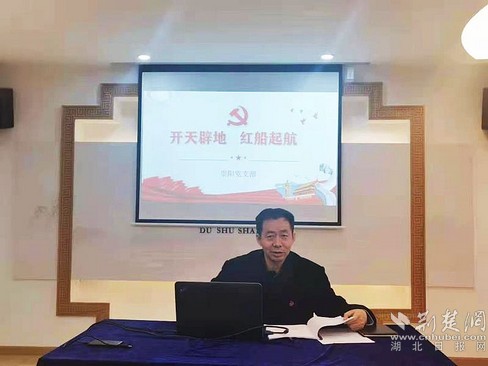 武黄高速崇阳管理所党员干部韩佳成为该所干部职工讲党史。通讯员供图