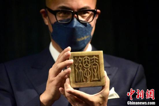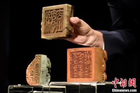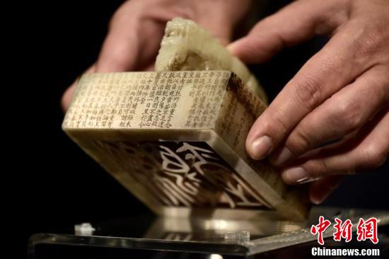 展示的清乾隆帝御宝交龙钮白“纪恩堂”玉玺为是次估价最贵的拍卖品。