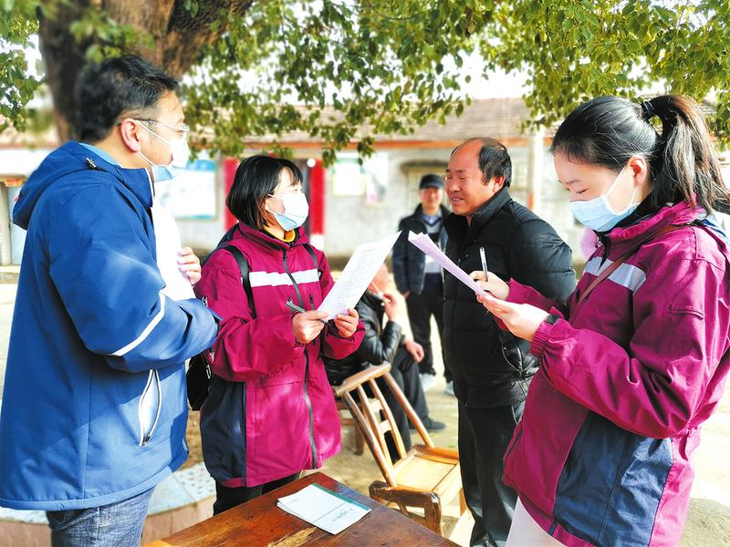 为准确掌握我市人间布鲁氏菌病流行规律,加强疫情分析与研判,3月12日,市疾控中心组织带领传染病防治所等工作人员在广水市郝店镇开展了职业人群布病监测工作。图为工作人员对养殖户进行了布病防治知识知晓及防护行为认知情况的调查。(随州日报通讯员胡傲容摄)