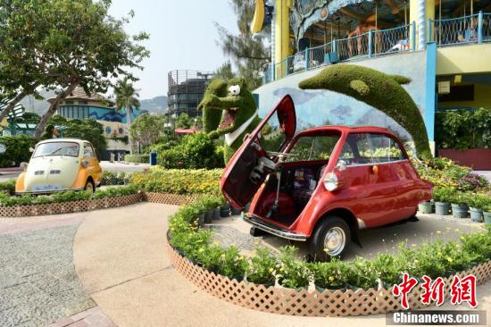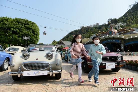 香港海洋公园与老爷车会将于3月27日起一连两日举行“CAR年华”车展,让市民相聚于海洋公园,近距离接触珍贵的古董车,推广老爷车鉴赏和汽车文化。图为小孩与古董车。