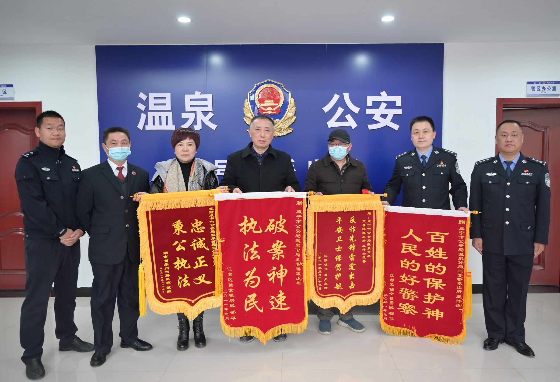 “感谢你们帮我追回了被骗的血汗钱!”22日下午,咸宁市公安局温泉分局三号桥派出所内,3名受害人在咸安区检察院检察官的见证下,高兴地从办案民警手中拿回了37万余元现金,并送上锦旗表达谢意。