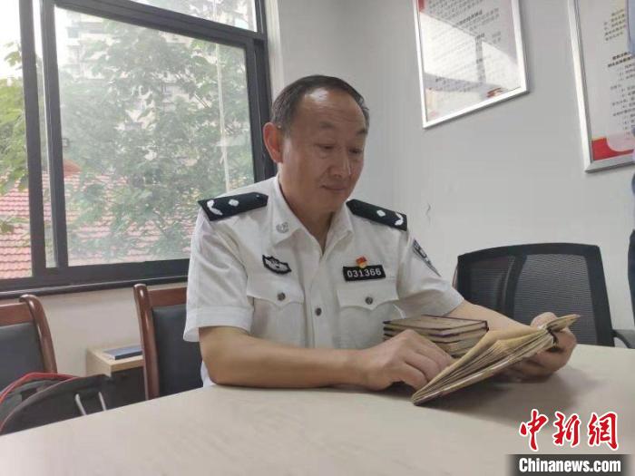 图为,民警杨远高翻看过去侦办案件笔记 孙逊 摄