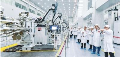 5月13日,嘉宾在武汉国家航天产业基地参观卫星智能生产线。