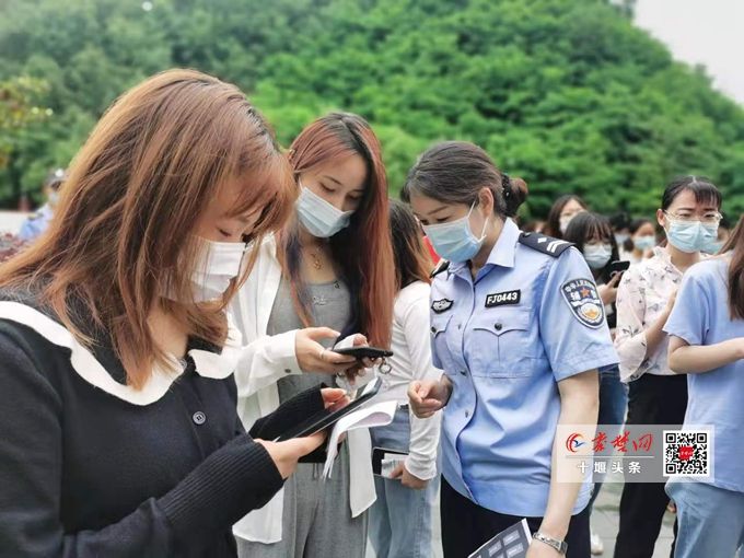 秦楚网-十堰头条讯 文、图/记者 杨建波 特约讯记者 汪丽君 报道:“同学,这个‘全民反诈APP’你安装了吗?”5月17日,十堰市公安局茅箭区分局人民路派出所结合疫情防控全员疫苗接种工作,在汉江师范学院新冠疫苗接种点开展电信网络诈骗防范宣传工作。对现场的8000余名学生展开“反诈防吸”宣传。