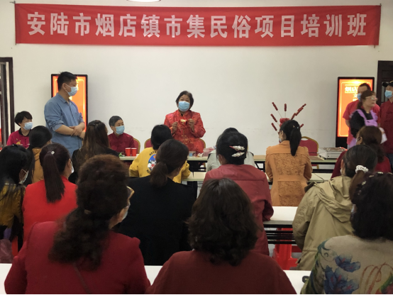 2021年5月19日安陆市烟店镇迎来了民俗项目教学。由安陆市文化和旅游局、安陆市烟店镇人民政府共同举办的”中国民俗培训班"在安陆白兆山脚下五言陆色文旅融合示范区举行。