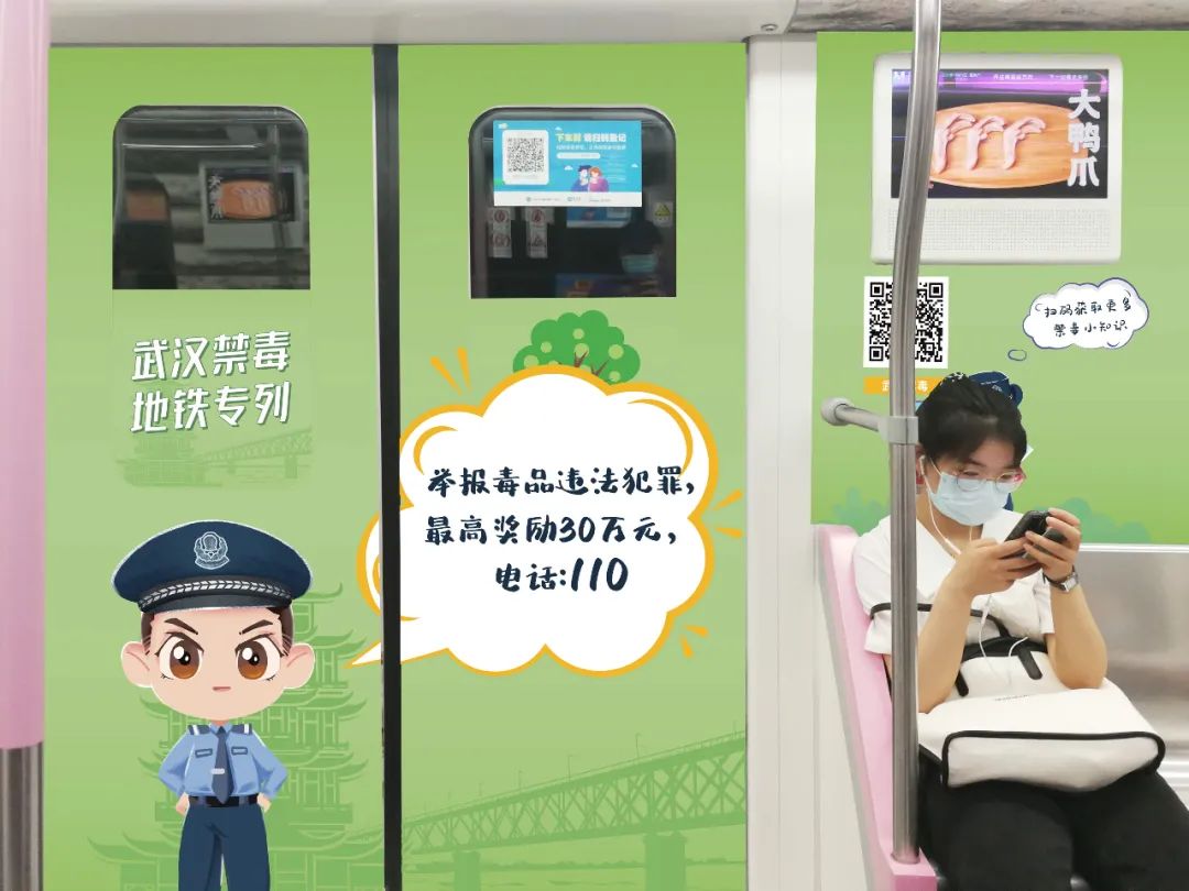 武汉轨道交通2号线(天河机场站—佛祖岭站),全长61公里、沿线38个站点,日均客流量超过100万人次。武汉地铁“禁毒主题专列”正式上线运营后,将对接天河国际机场、汉口火车站两大客运中心,联通武广、中南、街道口、光谷等四大商业综合体,途径武汉大学、武汉理工大学、华中师范大学等15所高等院校,是我市禁毒宣传教育的“移动展览馆”。