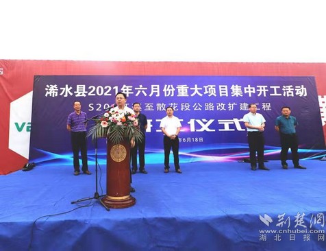 荆楚网(湖北日报网)讯(通讯员 方俊 王一波 王磊)6月18日上午,浠水县S201红莲到散花道路、徐家田集贸市场、建筑固体垃圾循环利用等3个重大项目集中开工,总投资4.7亿元。