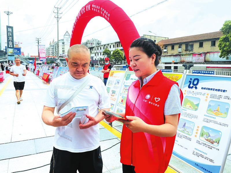 在全国第20个“安全生产月”到来之际,国网随州市曾都区供电公司采取多项措施扎实开展“安全生产月”活动,充分利用横幅、展板、折页等宣传手段积极营造氛围,通过进社区、进学校、进村镇,向广大居民用户普及安全用电常识。(随州日报通讯员刘畅何厚锦摄)