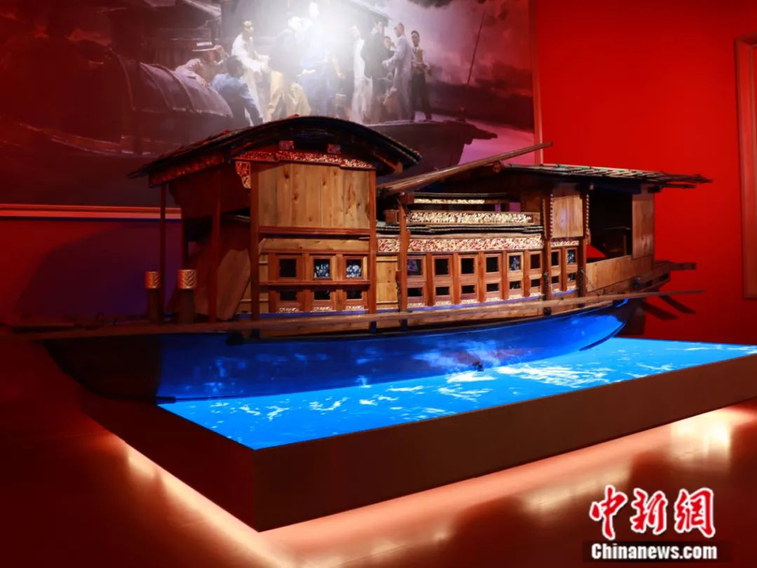浙江嘉兴南湖游船模型。中新社记者 李纯 摄