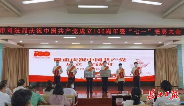 长江日报6月25日讯 “七一”临近,武汉市司法局召开庆祝中国共产党成立一百周年暨“七一”表彰大会,表彰新时代涌现出的优秀共产党员、优秀党务工作者和先进党组织,激励党组织及党员坚守初心,砥砺奋进。