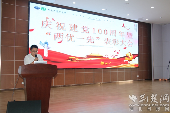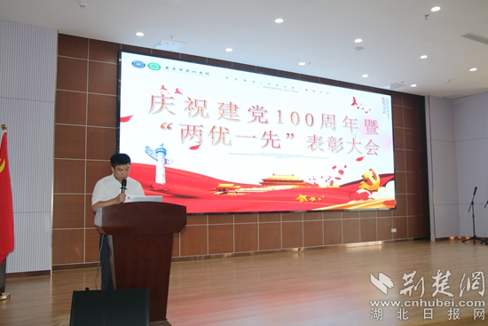 图为鄂东医养集团黄石市四医院党委副书记、院长陈云鹏主持庆祝建党100周年暨“两优一先”表彰大会。(通讯员供图)