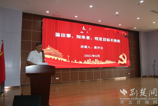 图为鄂东医养集团黄石市四医院党委书记黄开元讲授了以《鉴往事,知来者,咬定目标不放松》为题的专题党课。(通讯员供图)