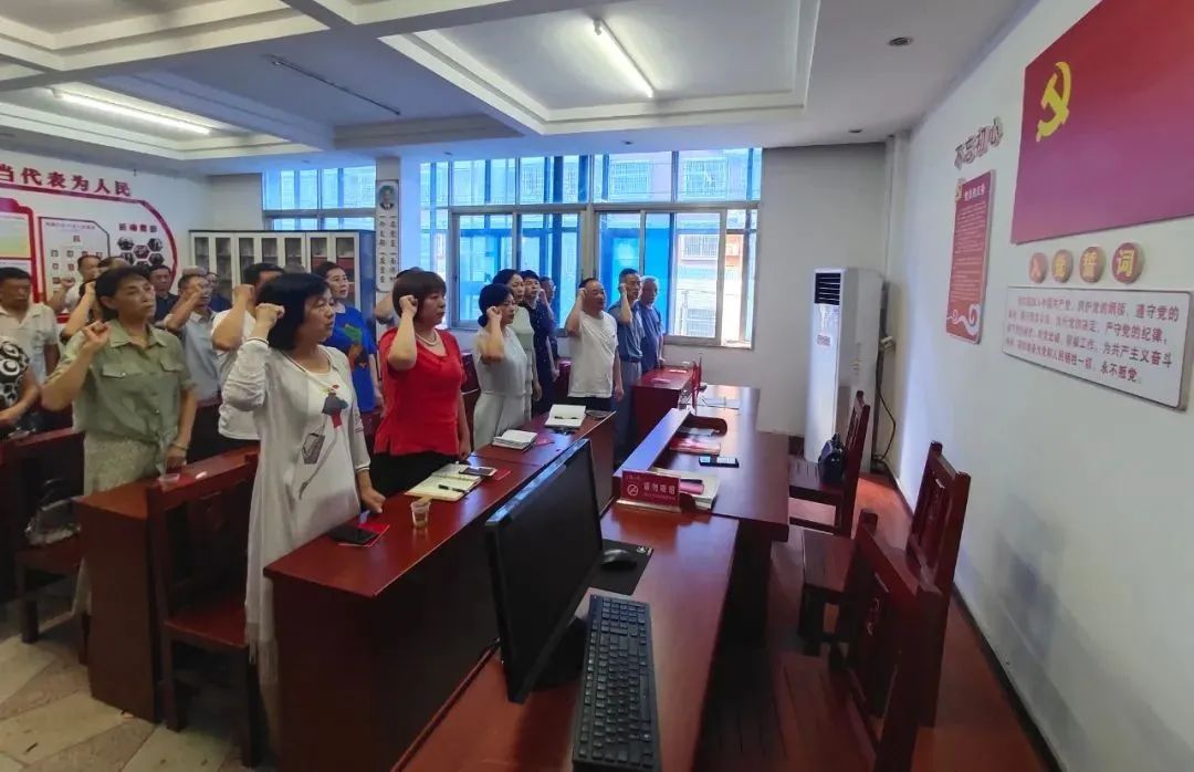 6月29日,驻村第一书记程卫华在驻点村讲党课,县妇联机关党支部全体党员,天城镇驻村党员、干部及环城村党总支全体党员一起聆听。