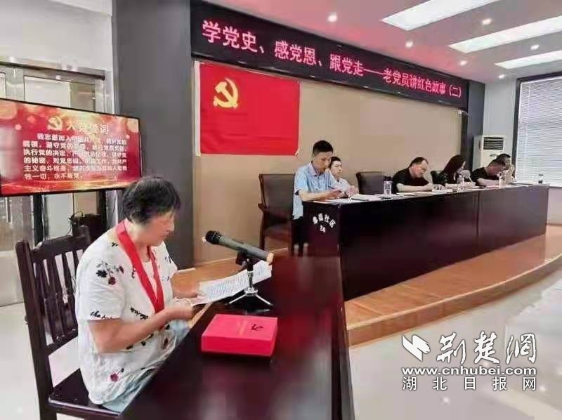 荆楚网(湖北日报网)讯(通讯员程爱华、陈芳) “各位党员,在建党百年华诞的喜庆日子里,我很高兴为大家讲宁死不屈的抗日女英雄——赵一曼的故事,回忆峥嵘岁月,缅怀革命先烈……”6月30日,在云梦县城关镇幸福社区支部主题党日上,该社区80岁的女党员汪翠华动情地讲革命英雄的感人事迹。