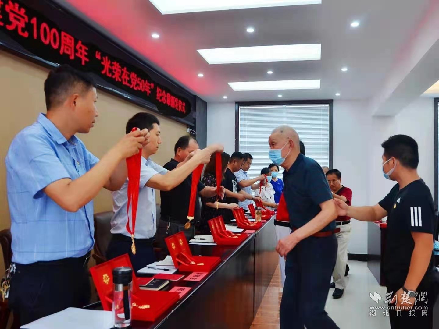 幸福社区为30名“光荣在党50年”老党员颁发纪念章。通讯员 供图