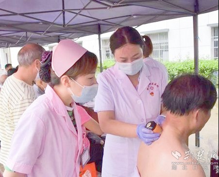 义诊团队的热情服务、耐心诊治深受广大群众的好评和赞扬。特别是刮痧、拔罐、手诊、推拿、针灸等传统中医技术的现场体验,一位刚刚做完火龙罐灸法的周先生称赞说:“真感谢你们的治疗!我这疼了好久的肩背轻松多了,希望你们能把这么好的技术传授到我们这里。”