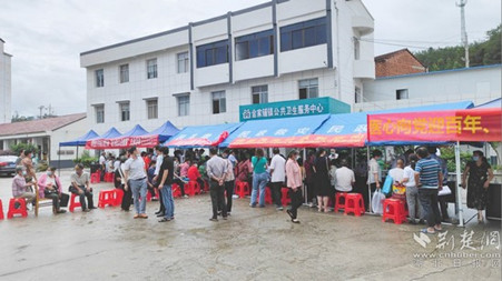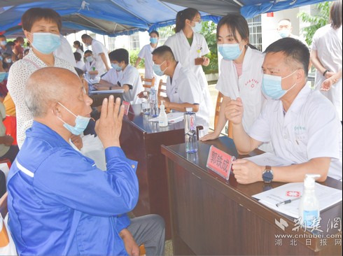 荆楚网(湖北日报网)讯(通讯员 何晓)7月3日,天公不作美,下起了阵雨,英山县金家铺镇卫生院义诊活动现场却气氛火爆,居民纷纷排队候诊。
