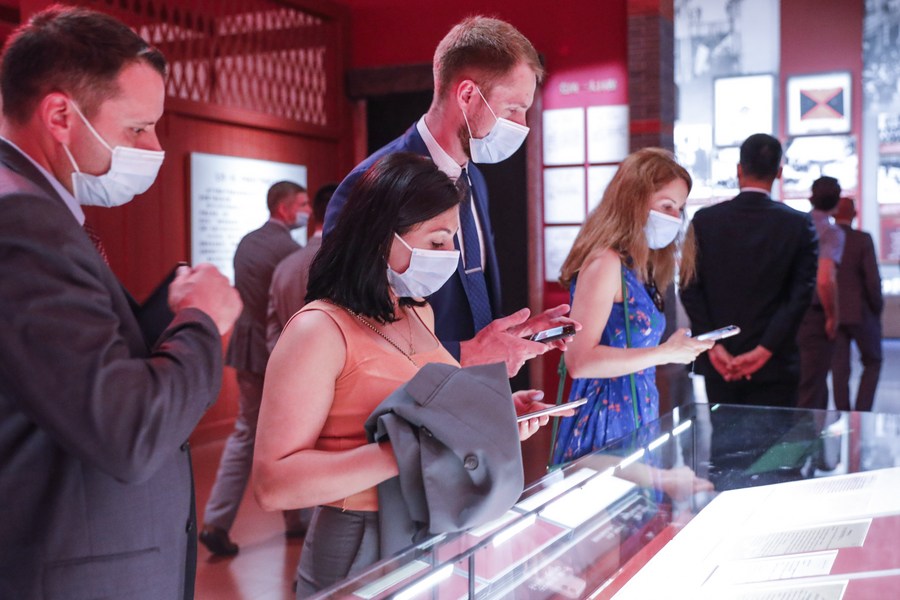 7月5日,俄罗斯外交官在中国共产党历史展览馆内参观。新华社记者 张玉薇 摄