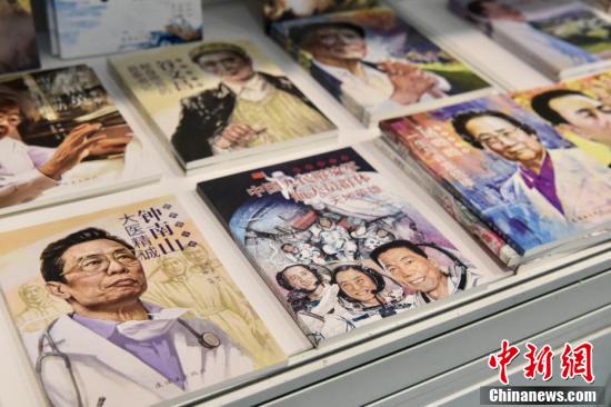 书商摆放钟南山、屠呦呦等人物画册故事,让市民加深了解。