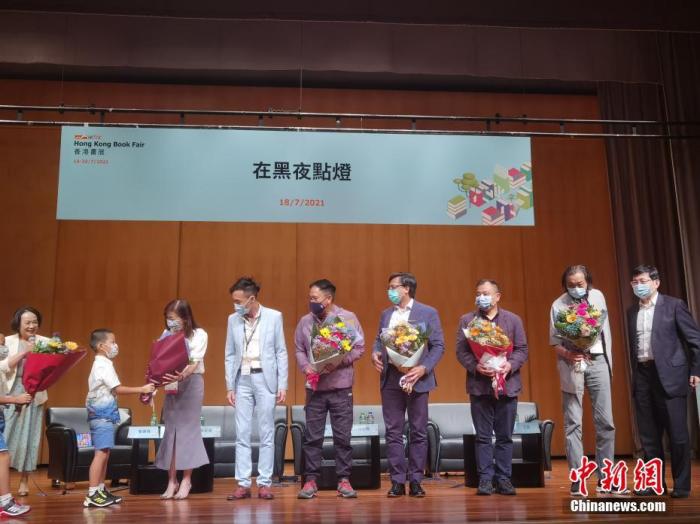 7月18日,香港书展举行《在黑夜点灯》分享会。图为小读者向书中主人公献花。 中新社记者 索有为 摄