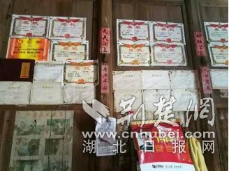 胡家墙壁上贴满了姐妹俩的奖状。通讯员 供图