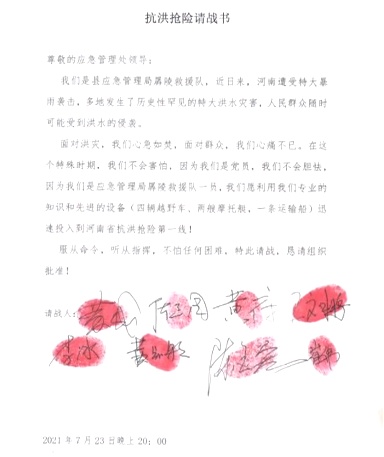河南受灾后,公安县潺陵应急救援队的8名队员第一时间向县应急管理局递交请战书。县潺陵应急救援队队员黄成与儿子黄府,心心相映,一道驰援河南救援,成为一道靓丽的风景。