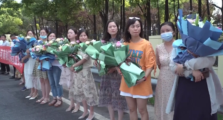 当天下午三点,前来迎接公安县潺陵应急救援队队员的群众列队在二广高速出入口,高举条幅,手捧鲜花,欢迎凯旋归来的救援队员们。