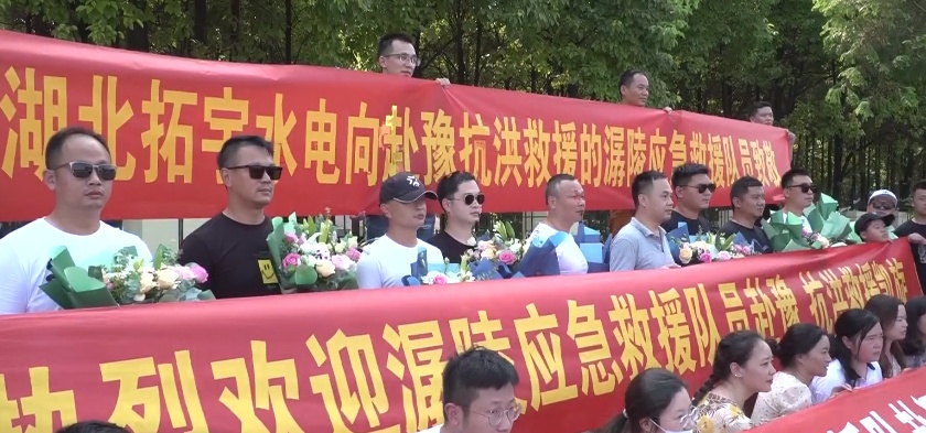 7月27日,驰援河南救灾的公安县潺陵应急救援队队员平安凯旋。