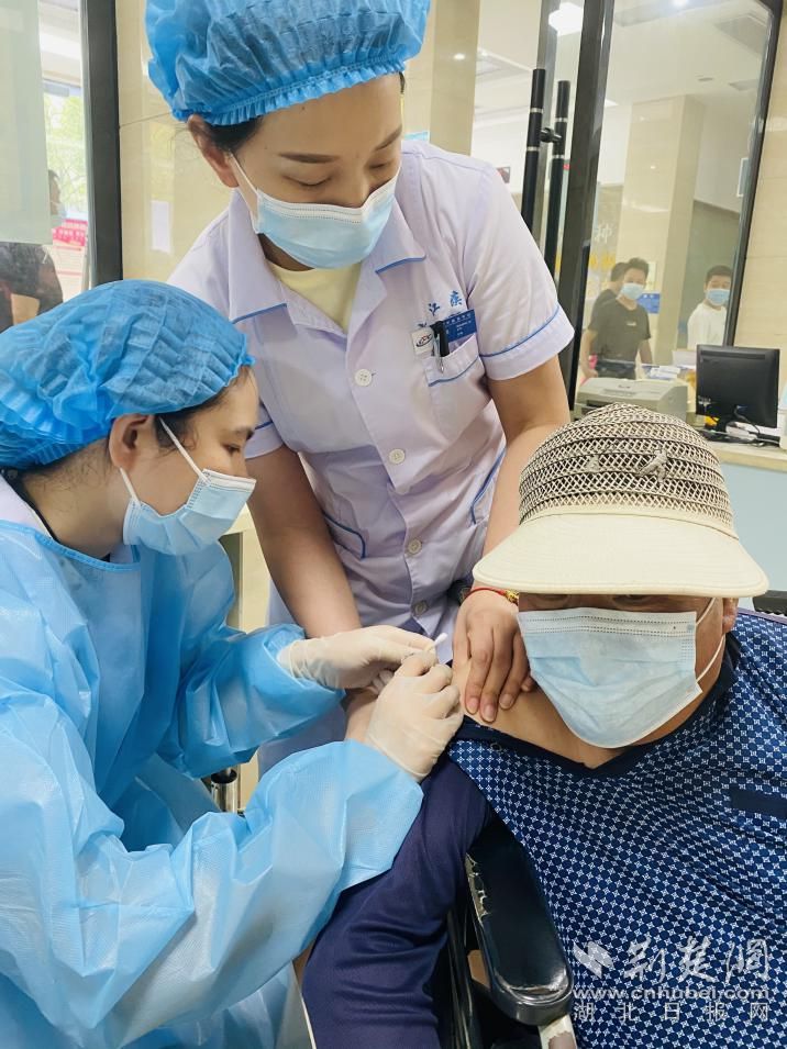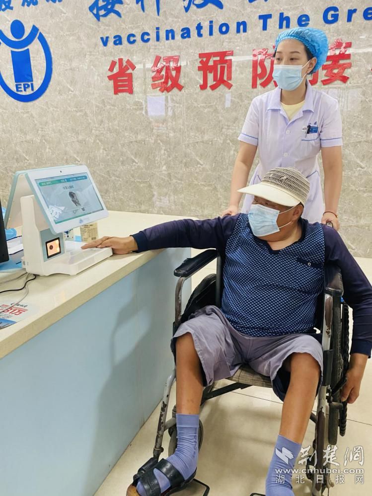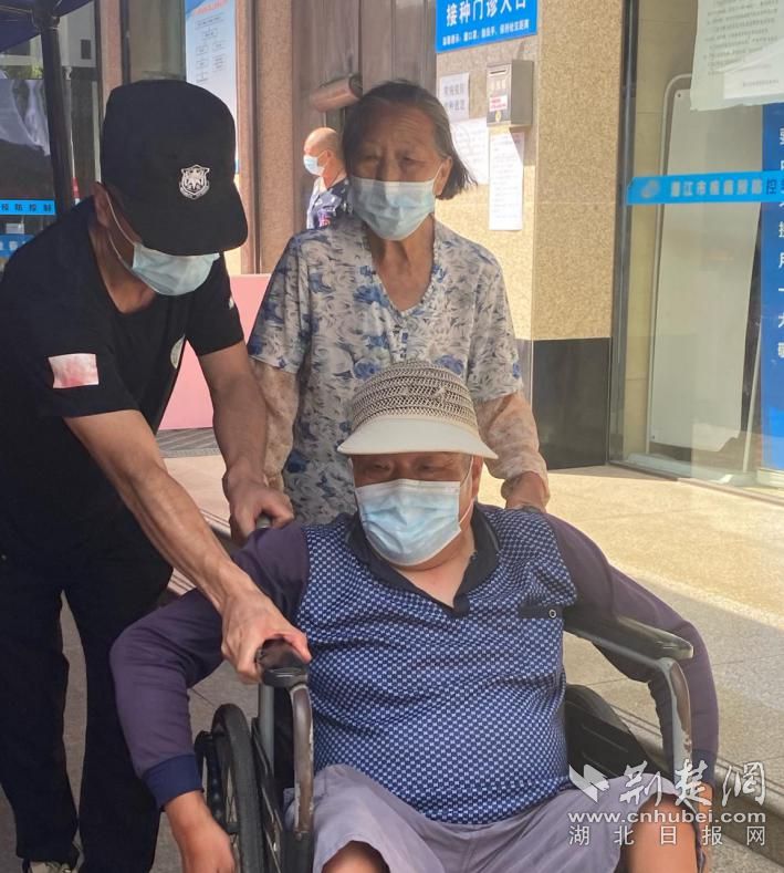 荆楚网(湖北日报网)讯(通讯员杨泽红)8月5日,在潜江市疾控中心新冠疫苗接种现场发生了这样暖心的一幕,78岁的母亲推着轮椅送52岁儿子接种疫苗。