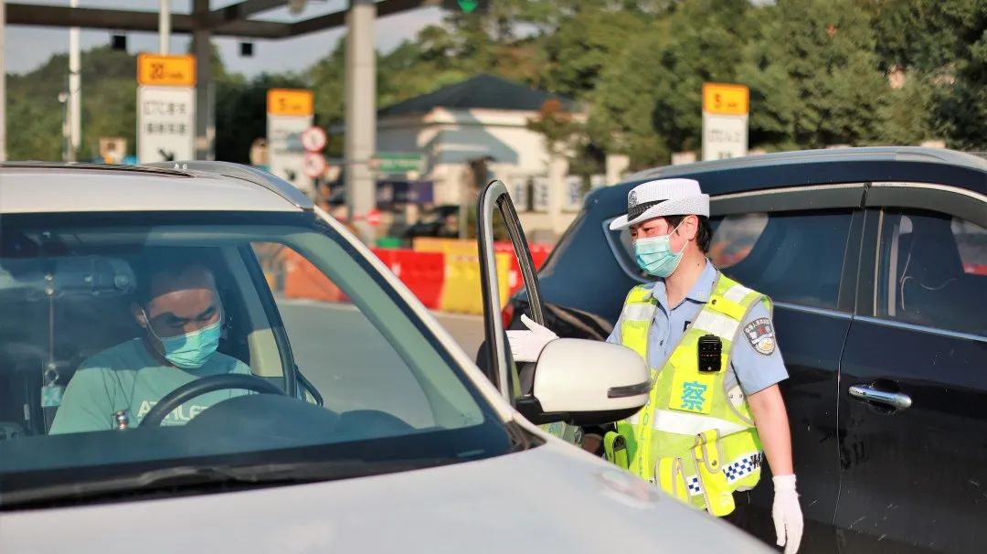 交警在咸宁北卡口执勤