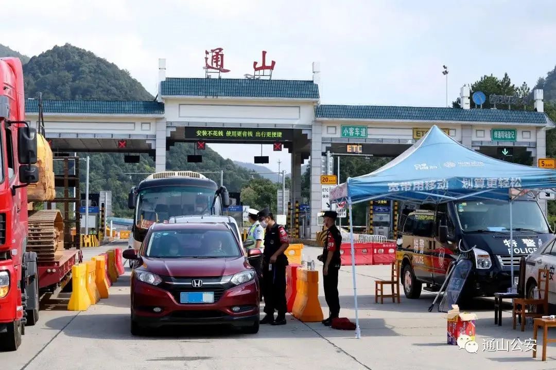 特巡警在山口检查车辆及人员信息