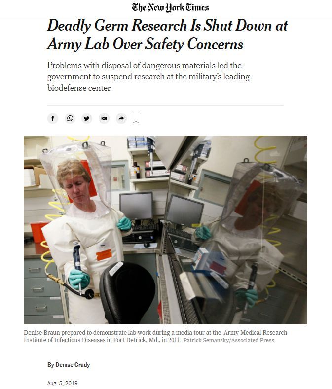 2019年8月5日,《纽约时报》曾报道美国疾控中心向德堡实验室发出了“停止和终止”令。