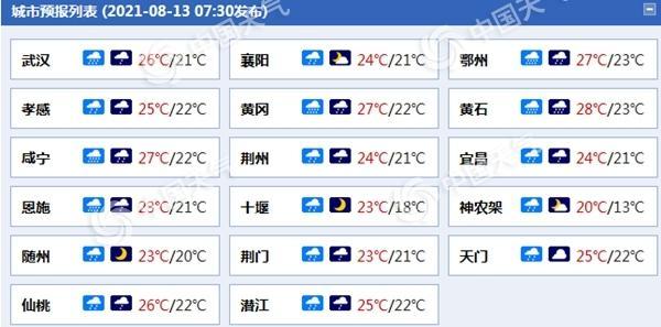 湖北各城市天气预报。来源:中国天气网