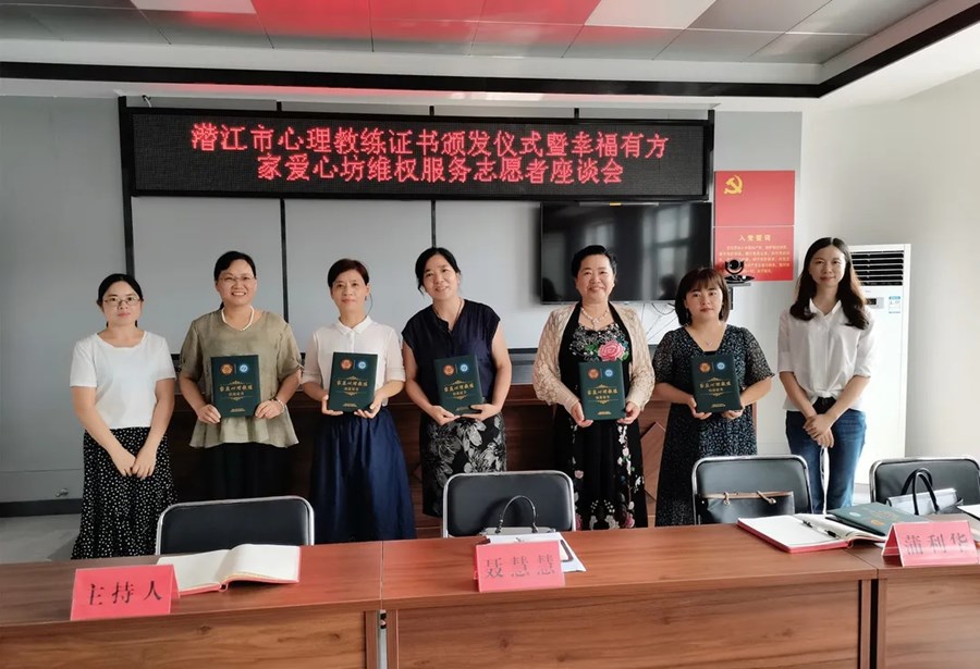 潜江新闻网讯(通讯员 刘敏)9月3日,潜江市心理教练证书颁发仪式暨“幸福有方——家爱心坊”维权服务志愿者座谈会举行。