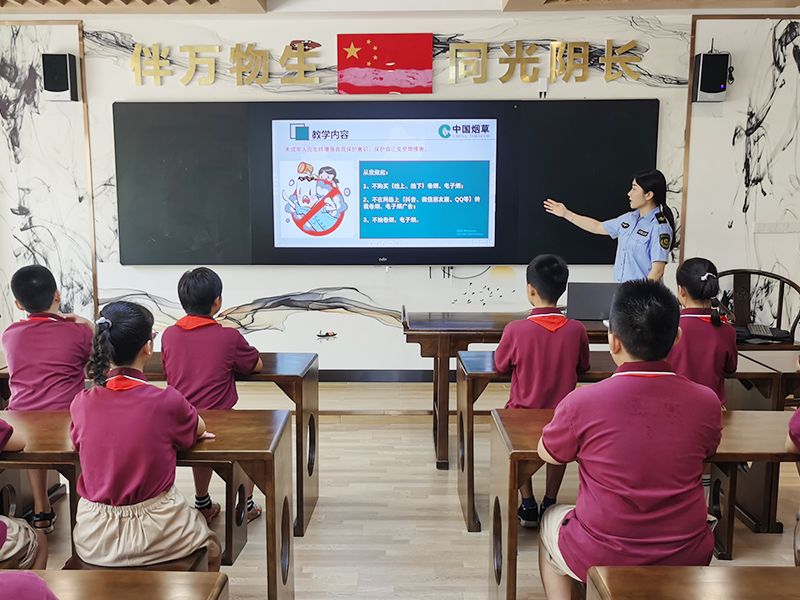 执法人员走进武汉市洪山区第三小学,从源头保护未成年人免受卷烟、电子烟侵害。