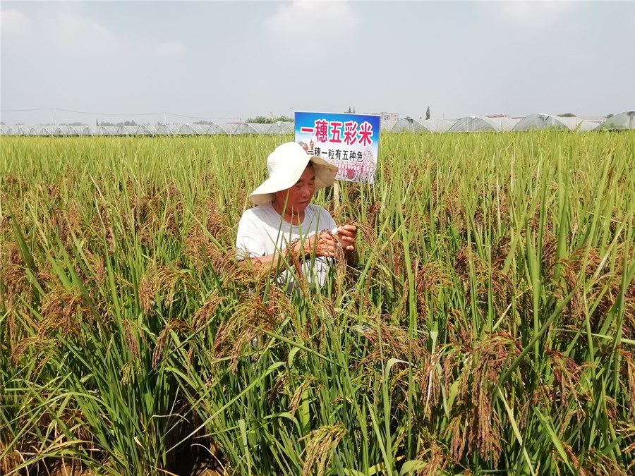 潜江新闻网讯(记者 王宇杰)有的稻谷是绿色的壳,里面的米是黑色或者绿色;有的稻谷是黄色的壳,里面的米却是红色;有的稻谷是黑色的壳,里面的米也是黑色的……又是一年稻谷收割季,9月13日,记者来到龙湾镇龙湾村五组,看到农民章安雄种的七彩稻谷在阳光的照射下十分好看,给乡村增添了一道色彩缤纷的新景色。