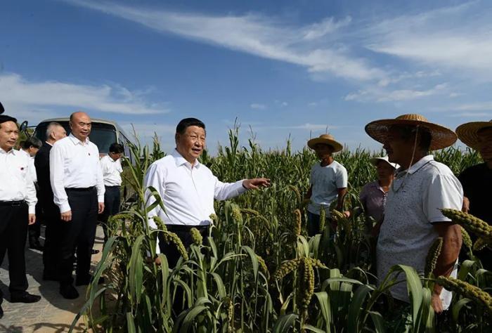 今年9月13日,正在陕西榆林米脂县考察的习近平途中临时下车,走进田间,察看谷子、糜子、玉米长势,同正在田间劳作的老乡拉家常,询问他们生产经营、家庭收入等情况。