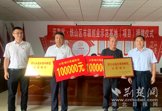 荆楚网(湖北日报网)讯(通讯员黎安琪)9月23日,黄石开发区·铁山区市级创业示范基地(项目)授牌仪式在汪仁镇沿湖村举行。黄石启帆生态农业专业合作社、湖北椿发生态农业有限公司被授牌为市级创业示范项目,黄石铁山光谷东企业孵化器被授牌为市级创业示范基地。