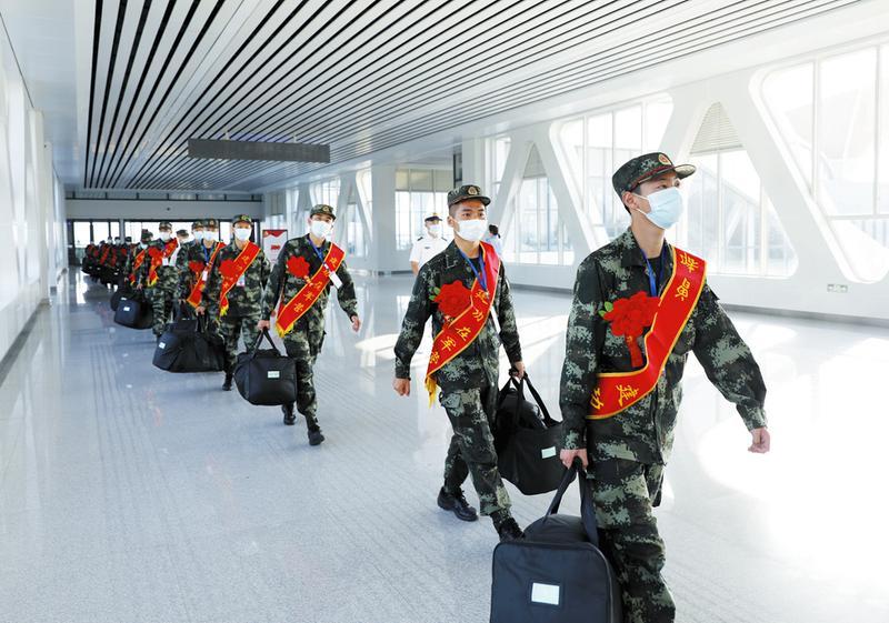 9月23日,随州市2021年秋季新兵正式开始起运,首批50多名新兵踏上入营的列车,开启军旅生涯。市委常委、军分区政委张爱华,随州军分区司令员琚万勇到随州南站为新兵们送行。(随州日报全媒记者 徐斌摄)