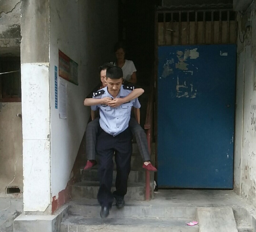 老人家中发病危急 民警背负送医脱险