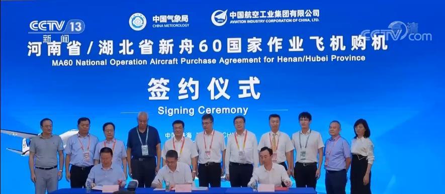 在中国航展航空馆新闻中心,中国气象局河南省人工影响天气中心、湖北省人工影响天气中心与中航西飞民机签订两架新舟60国家作业飞机购机合同,标志着我国中部区域人工影响天气能力建设工程正式启动。此次签订的购机合同,是新舟60国家作业飞机的第三批采购订单,表明国产新舟60国家作业飞机在飞机气象作业领域的技术水平已趋于成熟。