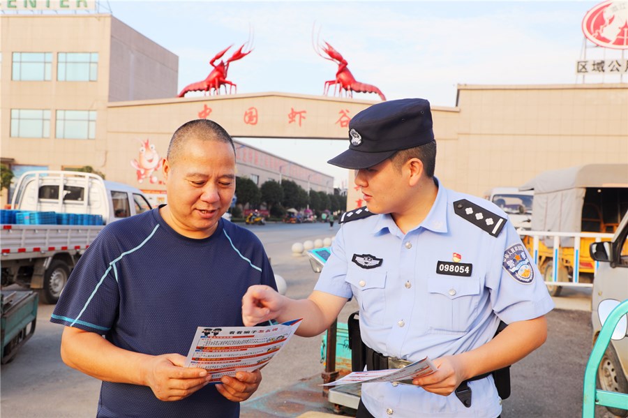 小龙虾交易高峰期,警务室协调交管部门为持有相关证件的小龙虾运输车辆开辟绿色通道,在虾谷设置交通执勤岗疏堵保畅,帮助企业及时解决了生产运输过程中的燃眉之急。