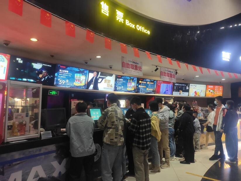 在江汉银兴影都影院购票大厅,市民们正有序等待观影,影院售票服务台前的电子屏幕上,《长津湖》和《我和我的父辈》占据影片排片前两位。据该影院相关负责人介绍,今年国庆档接待观众16000余人次,上映影片中,爱国题材影片《长津湖》排片占比达到50%,《我和我的父辈》排片占比达到30%。